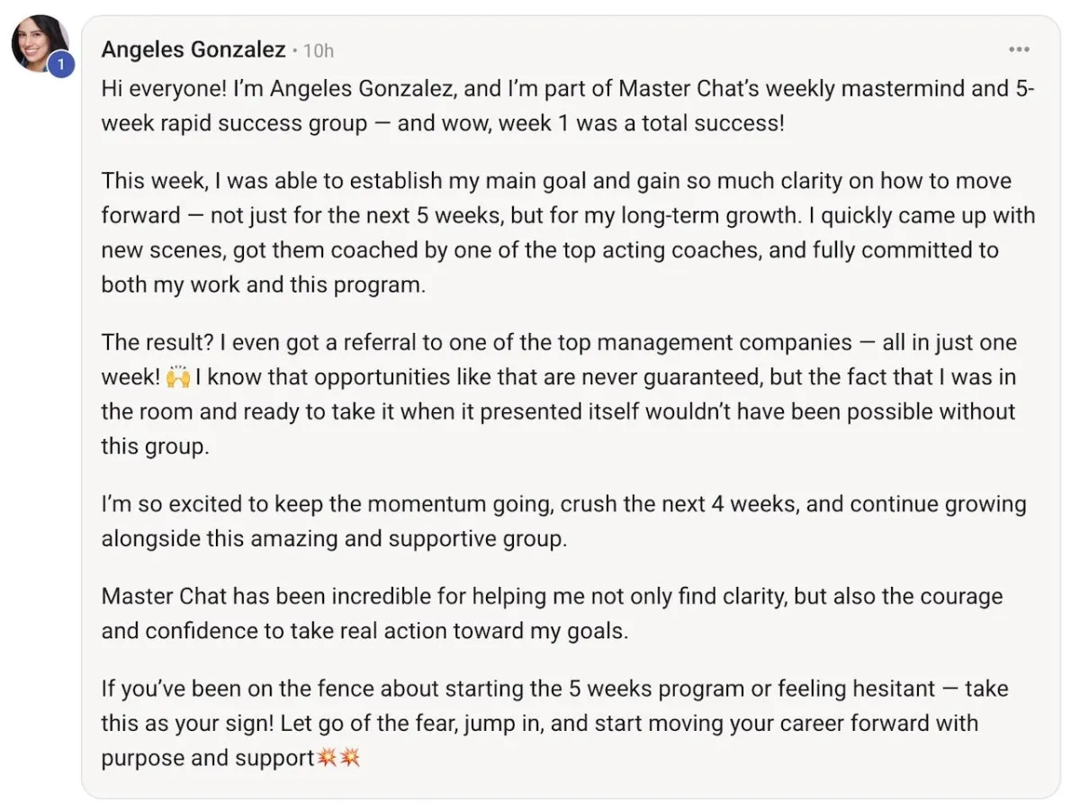 Learn how to gain clarity, accountability, and momentum through weekly live masterclasses and coaching